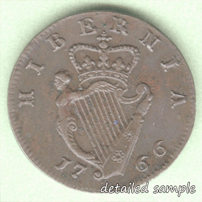 In 1736 George II introduced a new coinage in copper for Ireland. It was to consist of halfpennies and farthings though the farthing didn't appear until 1737. The coins for this issue were made in London in the Royal Mint and were shipped to Ireland to be placed in circulation. These regal coppers were well made and of good weight so they quickly became accepted in place of the copper tokens that had characterised Irish currency after the failure of the 'Wood's' coinage.